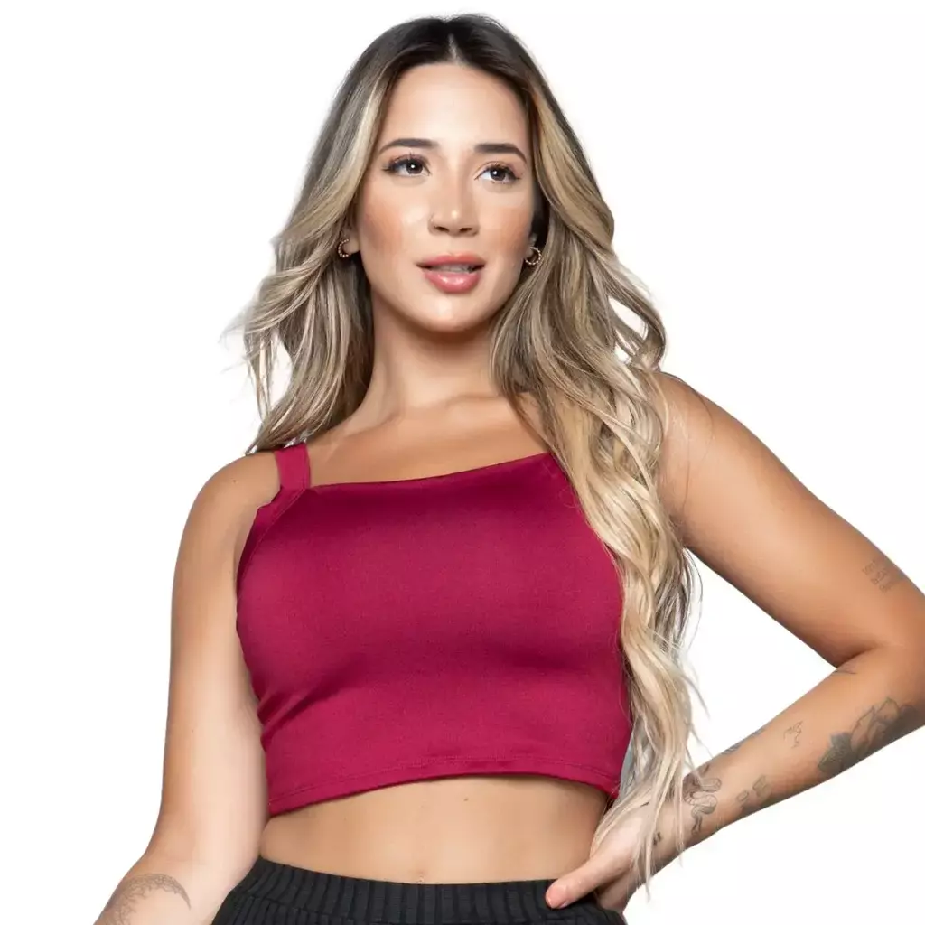 Confeccionado em suplex, esse modelo de cropped possui decote reto e alças grossas, proporcionando conforto e melhor ajuste ao corpo.
